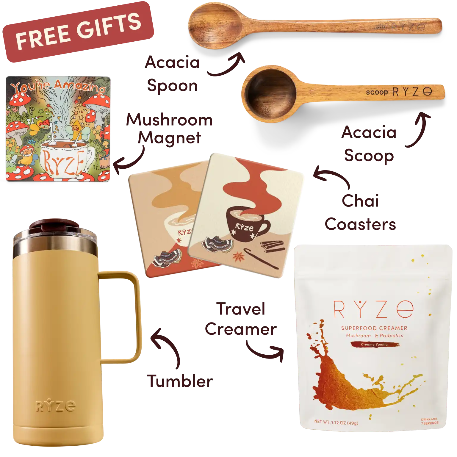 Yes! RYZE Mushroom Chai contains 1000mg (per serving) of our proprietary 6-mushroom blend, including Reishi, Lion’s Mane, King Trumpet , Shiitake, Turkey Tail, and Cordyceps.