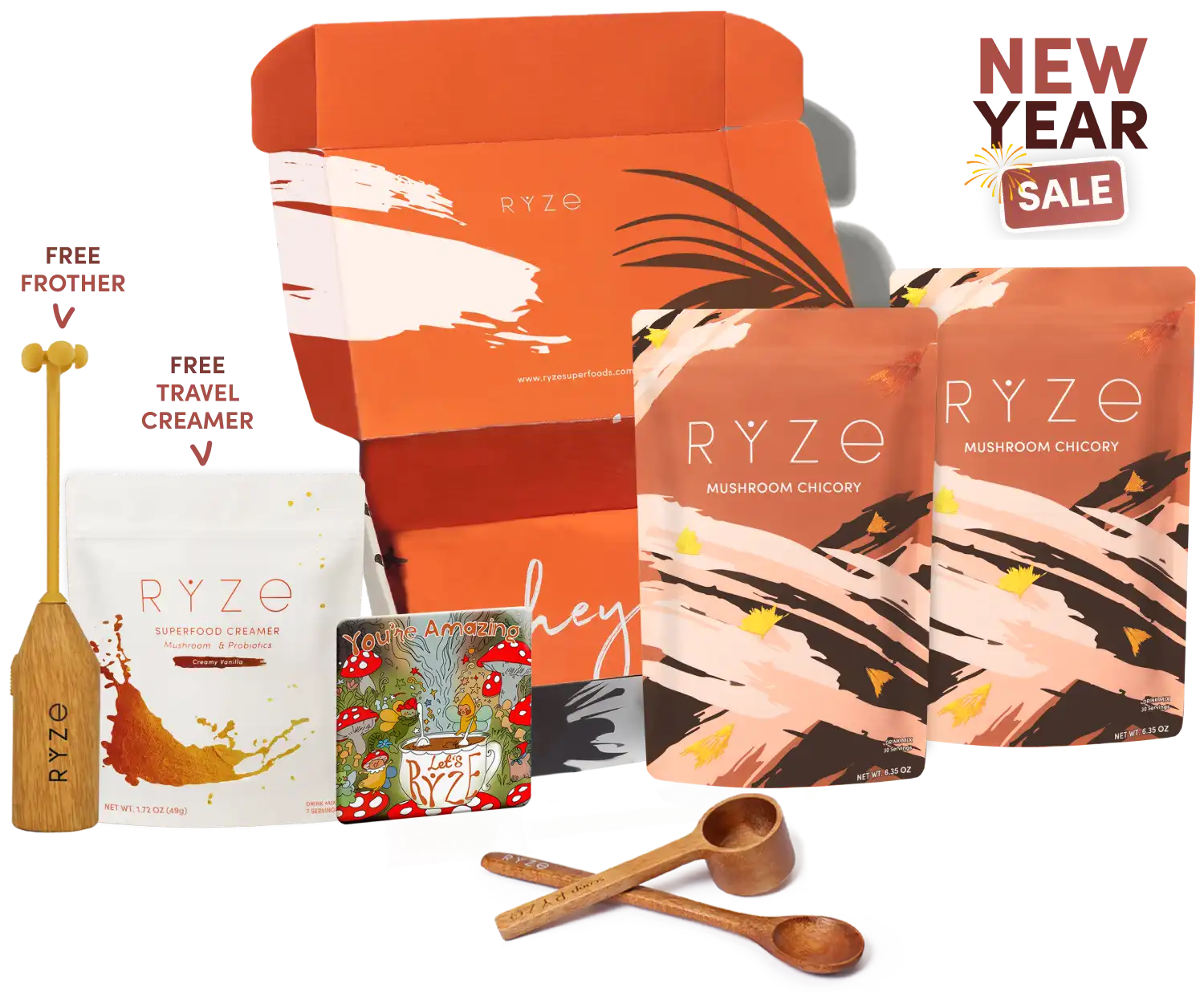 Since it’s caffeine-free, RYZE Mushroom Chicory can be enjoyed all day long. The mushrooms in the blend help boost oxygen intake to the brain and provide calm, sustained energy throughout your waking hours. Zero caffeine means you can still drink the blend at night, without any disruption to your sleep patterns. It truly is the most versatile coffee replacement on the planet.