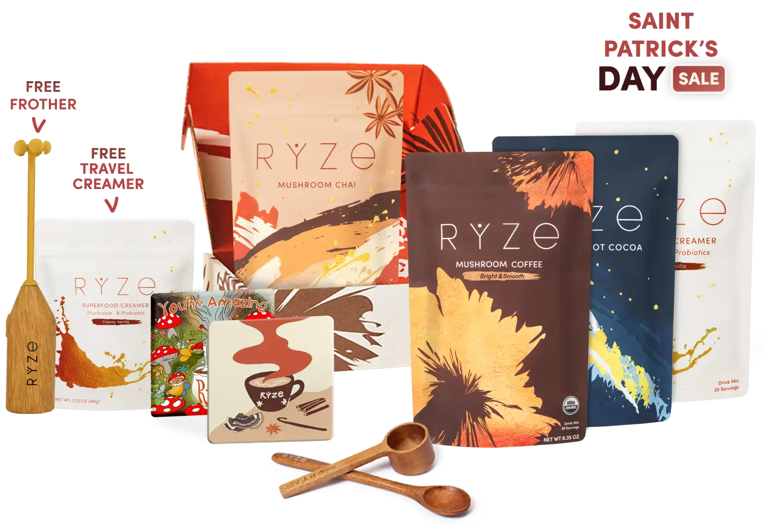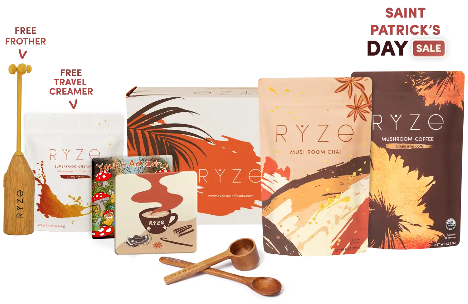 Ayurvedic spices are known for boosting vitality and feature a warm, comforting flavor profile. Our RYZE Mushroom Chai is made with spices such as cinnamon and cardamom.