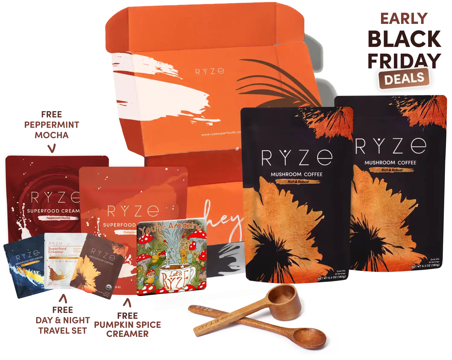 More brain and body benefits! RYZE Dark Roast offers a plethora of benefits like a calm, focused mind, no jitters, maintaining sustained energy without the crash, immune support, gut health and digestive balance. In addition, our SUPER6™ Mushroom Blend supports overall brain and body wellness with naturally occurring compounds with antioxidant activity.
