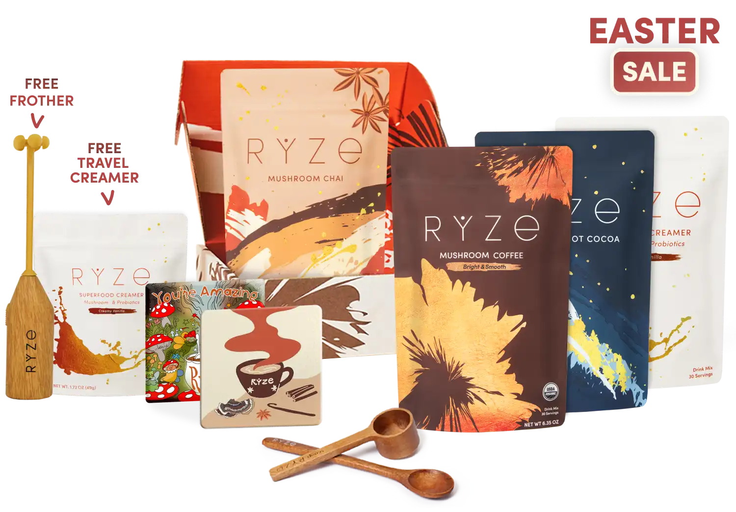 Ayurvedic spices are known for boosting vitality and feature a warm, comforting flavor profile. Our RYZE Mushroom Chai is made with spices such as cinnamon and cardamom.